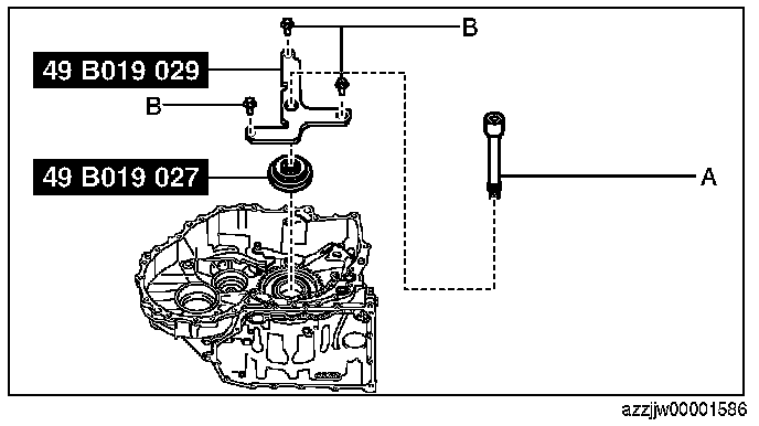 B : Bolt supplied with SST (49 B019 029) or M8x1.25, length to 18 mm {0.71 in}