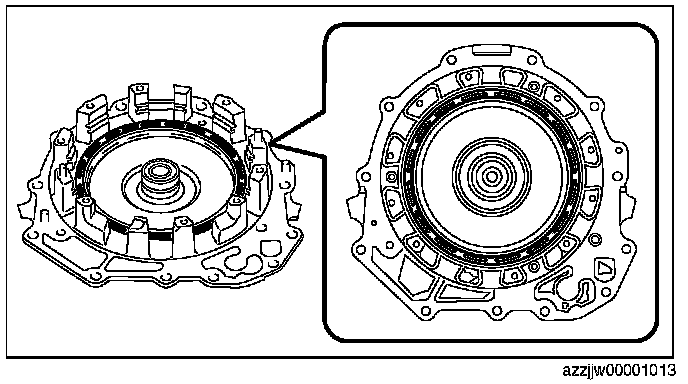 CAUTION: If the drive plate is replaced with a new one, immerse it in ATF (ATF FZ) for 2 hours or more to permeate the facing with ATF.