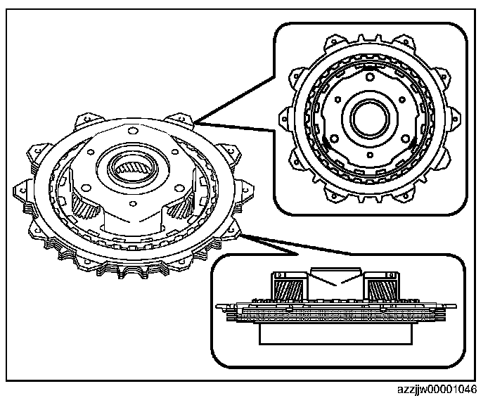 - Assemble the retaining plate so that the splines of the retaining plate and the splines of the driven plates are positioned as shown in the figure.