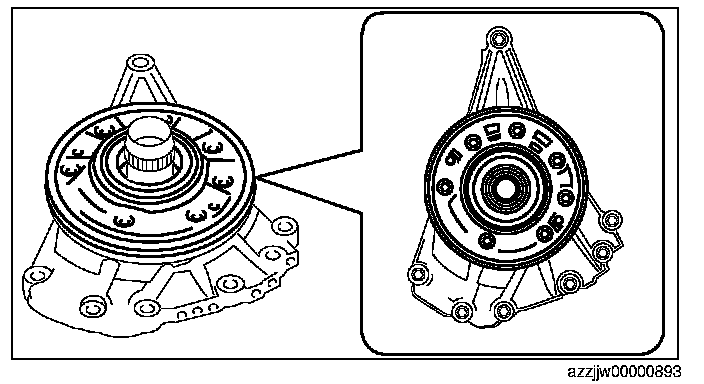 NOTE: Assemble so that the inner rotor marking is facing the oil pump housing.