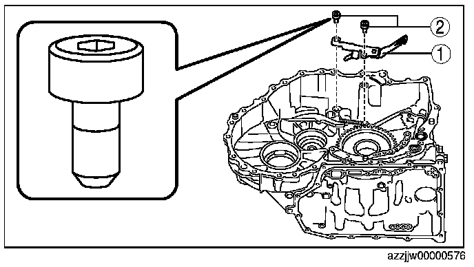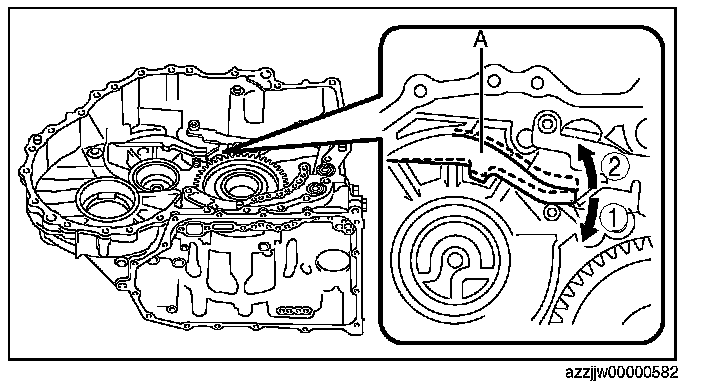 2. To verify that the parts are securely assembled, move the parking pawl in the direction of (1) by hand, and verify that the parking pawl returns to its original position (direction (2)) when removing your hand.