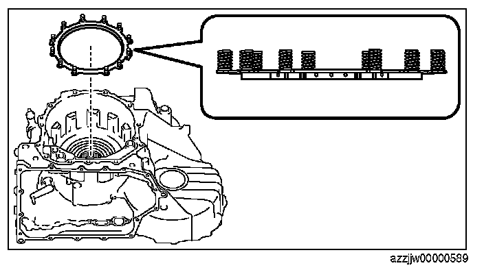 CAUTION: if the drive plate is replaced with a new one, immerse it in ATF (ATF FZ) for 2 hours or more to permeate the facing with ATF.