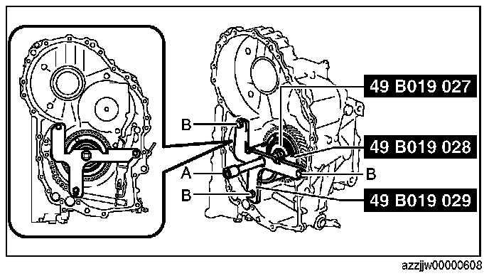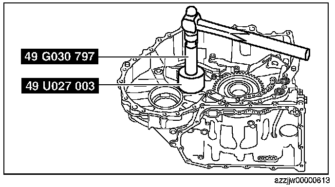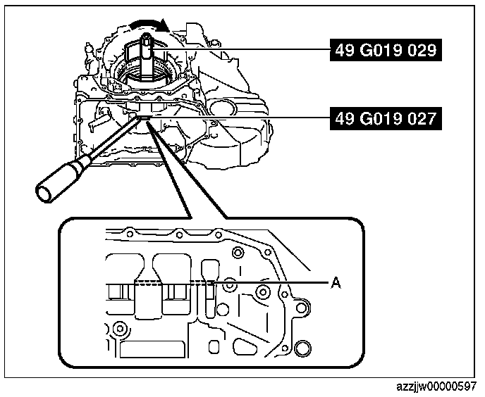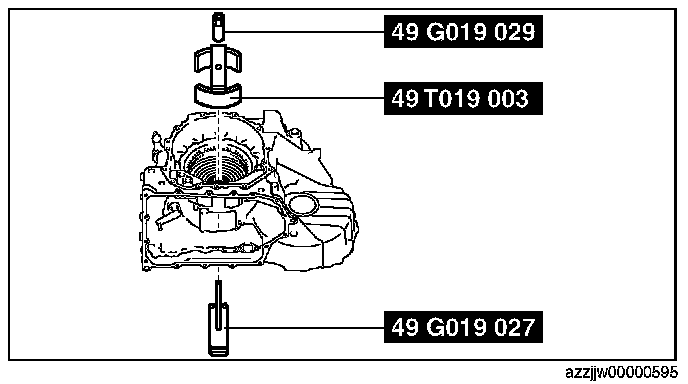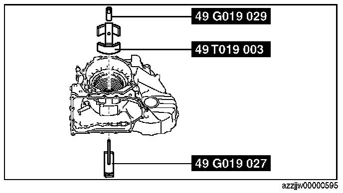 3. Tighten the SST (49 G019 029) until the snap ring groove of the transaxle case comes out.