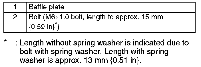 CAUTION: The bolts for the baffle plate assembly are applied with thread-locking compound. If the bolts are reused it could loosen the bolts, therefore use new bolts.