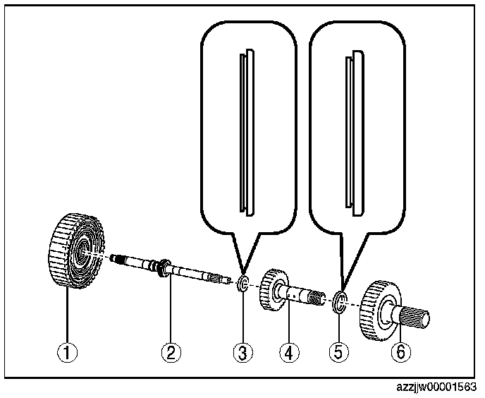 CAUTION: The total end play is the play (gap) in the axial direction of each planetary gear. If the total end play adjustment is not performed, it may cause damage to the thrust needle bearing between each planetary gear or other parts.