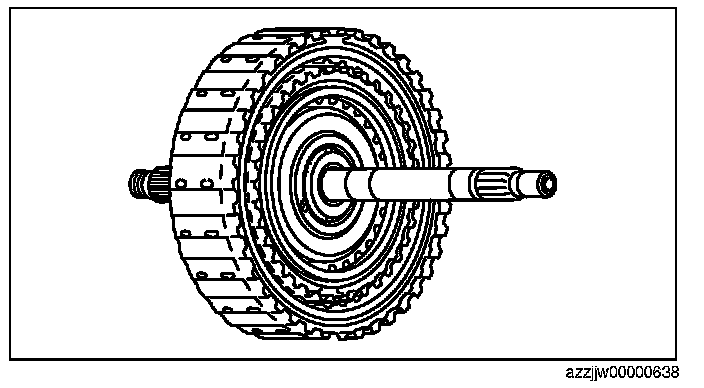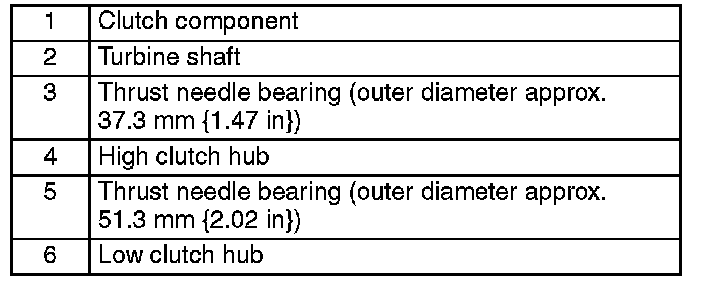 38. Assemble together the clutch component, turbine shaft, high clutch hub, low clutch hub, and thrust needle bearing using the following procedure: