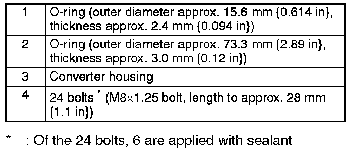 4. Assemble the converter housing before the applied sealant starts to harden.