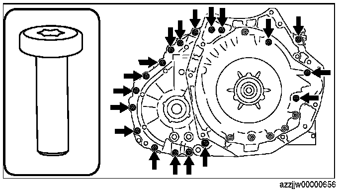 NOTE: Bolt size: M8x1.25 bolt, length to approx. 21 mm {0.83 in} (with sealant applied)