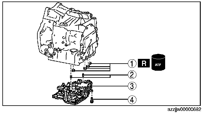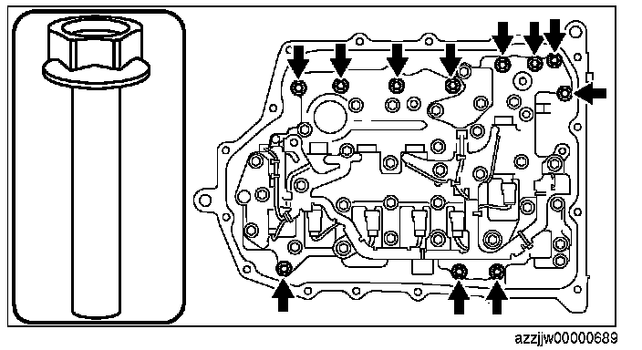 CAUTION: The bolts for the assembly are applied with sealant. If the bolts are reused it could cause ATF leakage, therefore use new bolts.