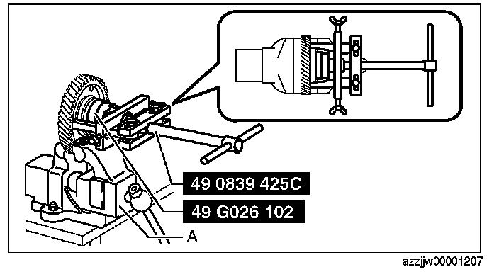 NOTE: If there is already a gap between the primary gear end and the angular contact ball bearing end in which the tab of the SST (49 0839 425C) is inserted when removing the primary gear, this procedure is not necessary.