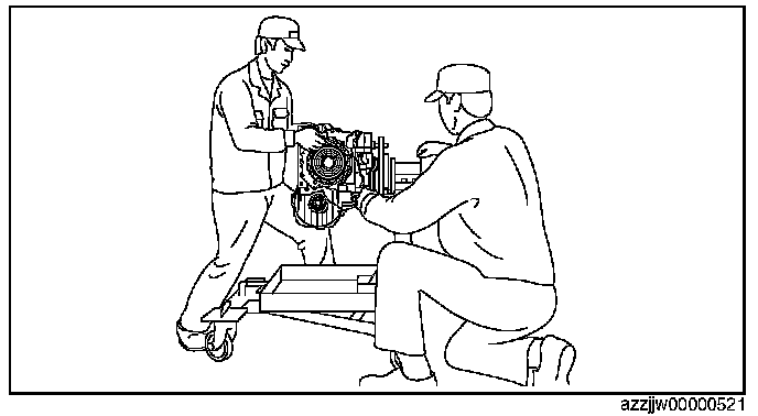 CAUTION: For safety purposes, perform the procedure using two people, one removes the transaxle case from the SST and the other supports the transaxle case.