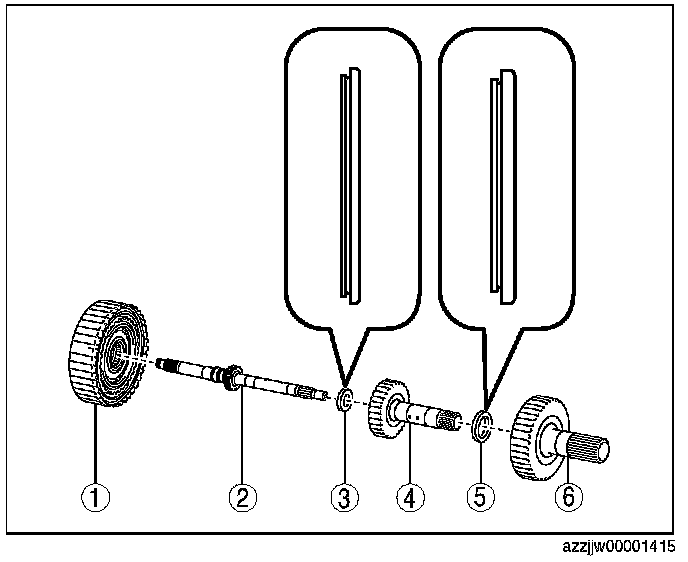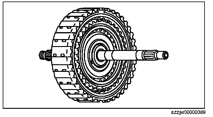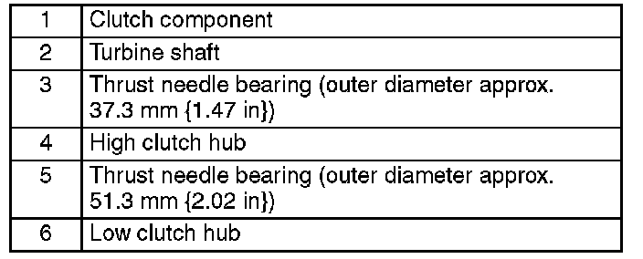 31. Assemble together the clutch component, turbine shaft, high clutch hub, low clutch hub, and thrust needle bearing using the following procedure: