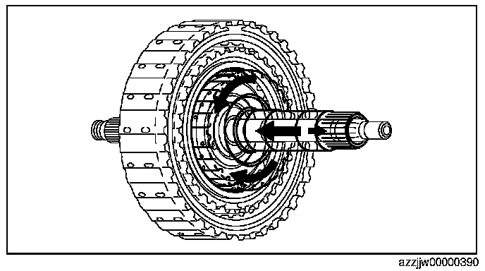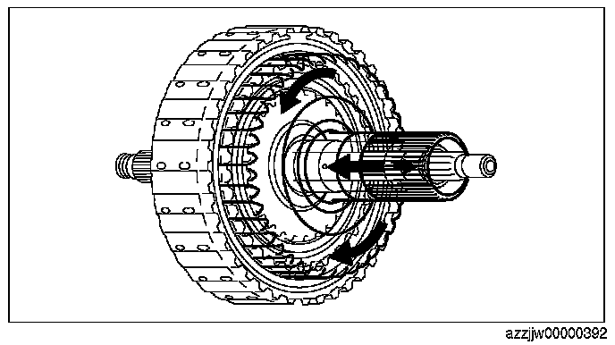 2. While rotating the low clutch hub, engage the splines of each of the low clutch drive plates one by one, and assemble.