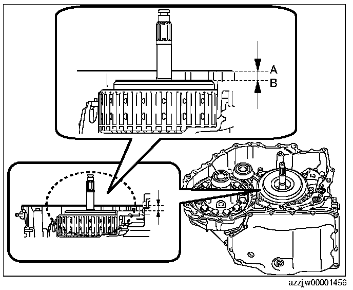 3. To verify that the torque converter is securely assembled, measure the distance shown in the figure.