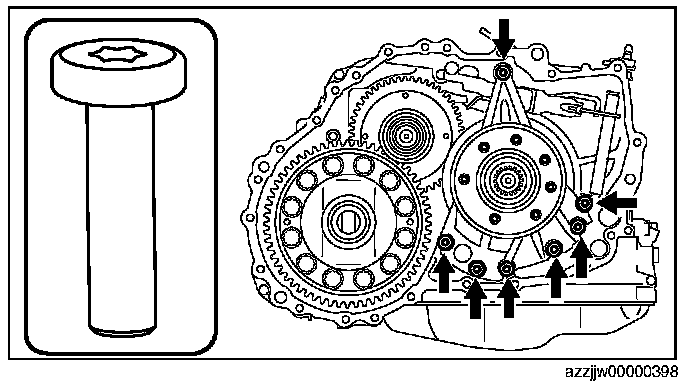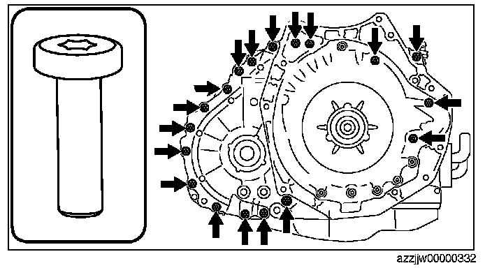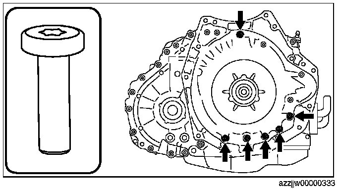 CAUTION: The bolts for the assembly are applied with sealant. If the bolts are reused it could cause ATF leakage, therefore use new bolts.