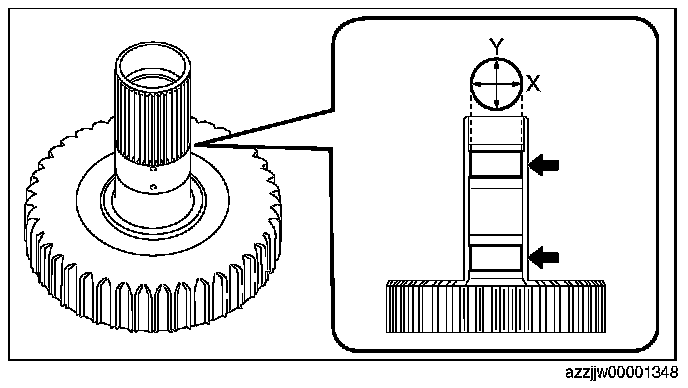 - When measuring, measure near the center of the bush avoiding the oil groove, and then calculate the average value of the X and Y directions as shown in the figure.