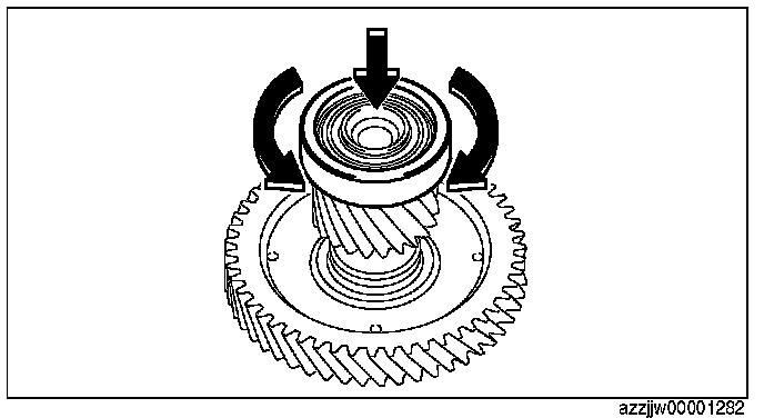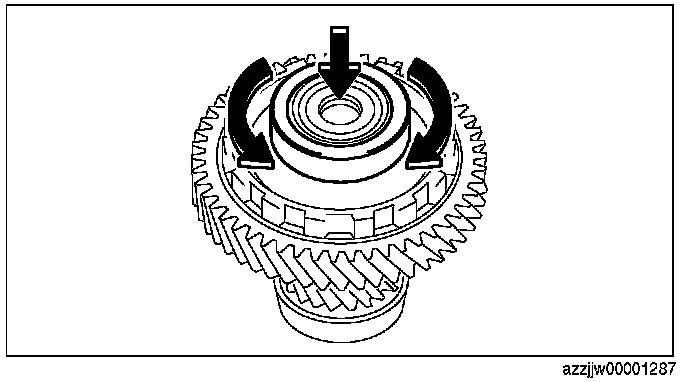 3. With a load applied by hand to the bearing race, rotate the bearing race and verify that there is no malfunction in the taper roller bearing (rotation sticking).
