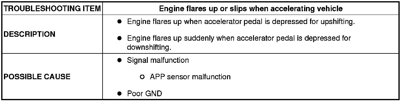 ENGINE FLARES UP OR SLIPS WHEN ACCELERATING VEHICLE [FW6A-EL]