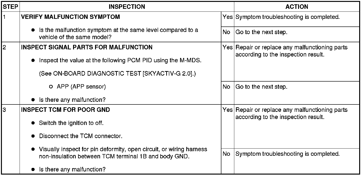 - Verify the malfunction symptom according to not only the PID value but also the symptom troubleshooting.