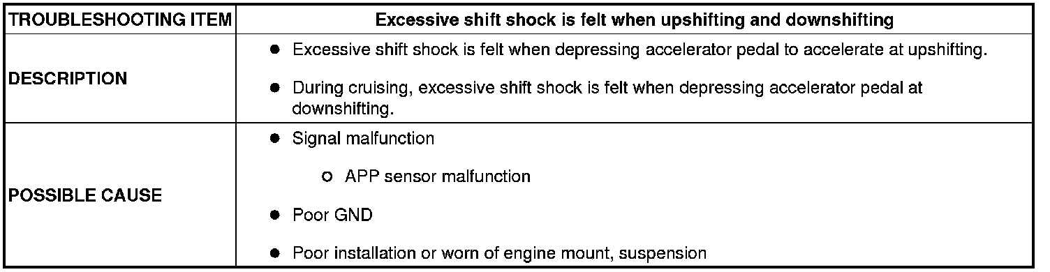 EXCESSIVE SHIFT SHOCK IS FELT WHEN UPSHIFTING AND DOWNSHIFTING [FW6A-EL]