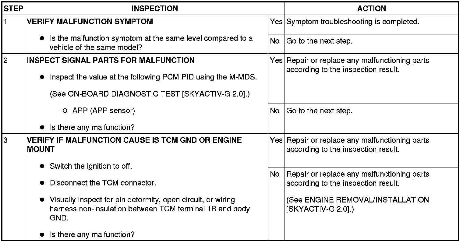 - Verify the malfunction symptom according to not only the PID value but also the symptom troubleshooting.