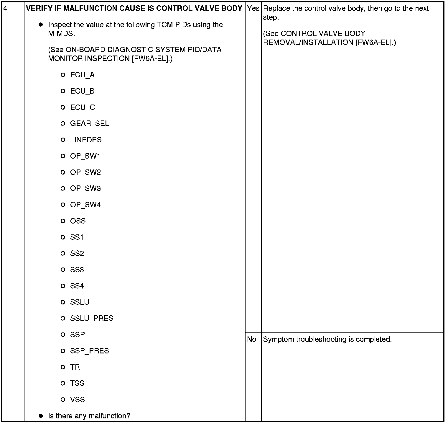 Verify the malfunction symptom according to not only the PID value but also the symptom troubleshooting.