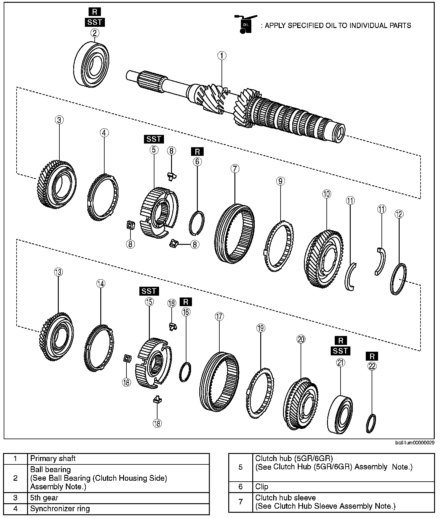 PRIMARY SHAFT COMPONENT ASSEMBLY1. Assemble the primary shaft component using the procedure shown in the figure.