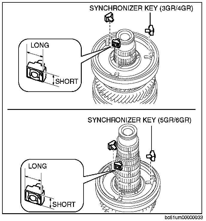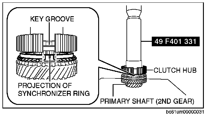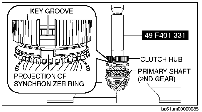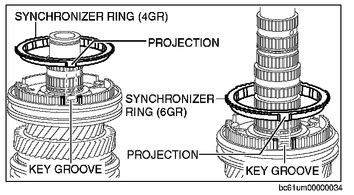 2. Align the projection of the synchronizer ring with the key groove of the clutch hub.