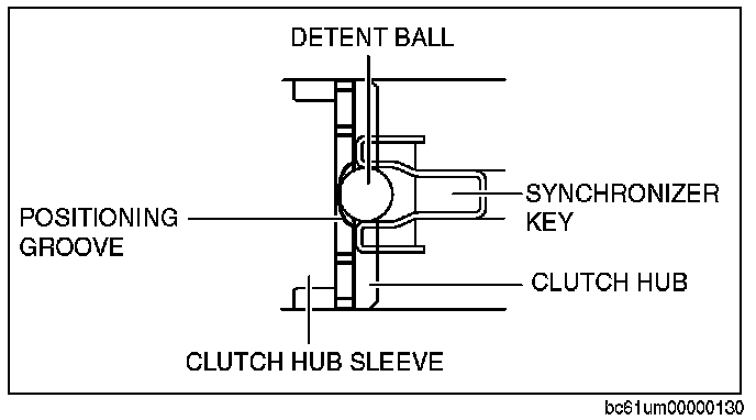 2. After the synchronizer key is assembled, verify that the detent ball of the synchronizer key is engaged with the positioning groove of the clutch hub sleeve.