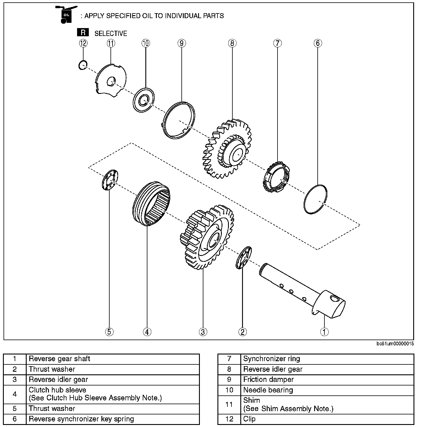 REVERSE IDLER GEAR COMPONENT ASSEMBLY1. Assemble the reverse idler gear component in the order shown in the figure.