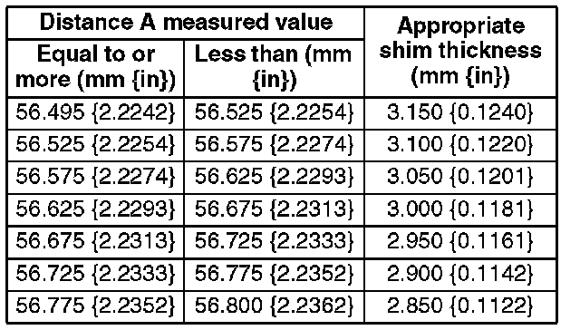 2. Select a shim of the appropriate thickness referring to the measured values in the table.