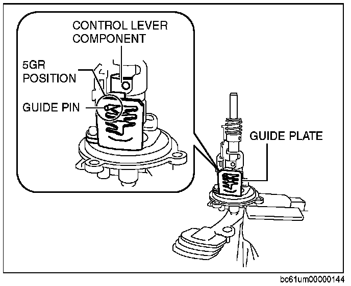 4. Move the control lever component to set the guide pin to the 5GR position of the guide plate.