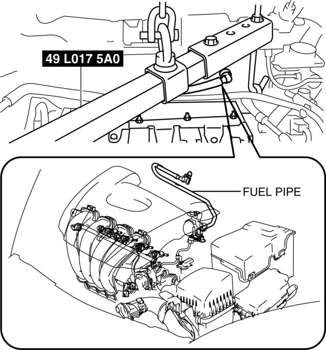- Install the SST (49 L017 5A0) so that it does not interfere with parts such as the fuel pipe. If the SST (49 L017 5A0) interferes, parts such as the fuel pipe could be damaged.