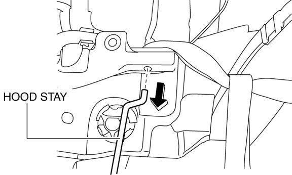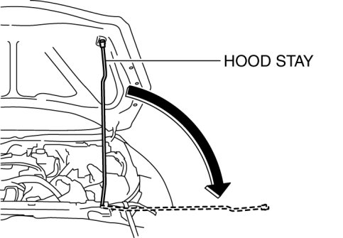 - If the hood stay is not hooked to the hood hole, the hood may fall down. Lightly shake the hood to verify that the hood stay is hooked securely.