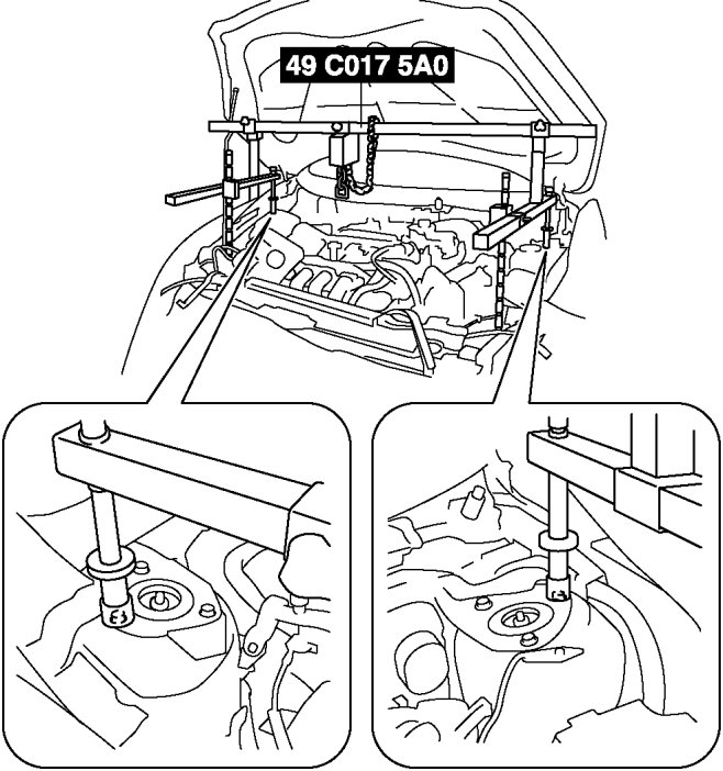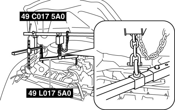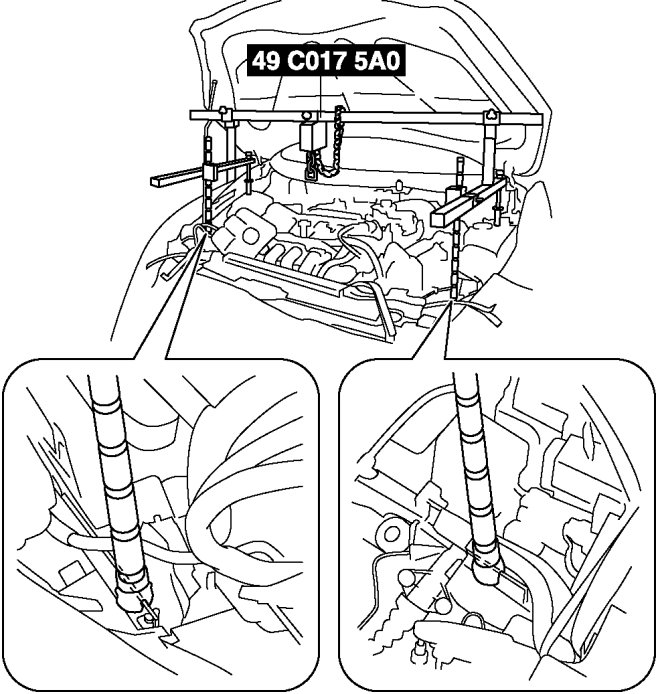 3. Adjust the SST (49 C017 5A0) so that the engine is located at the specified position.