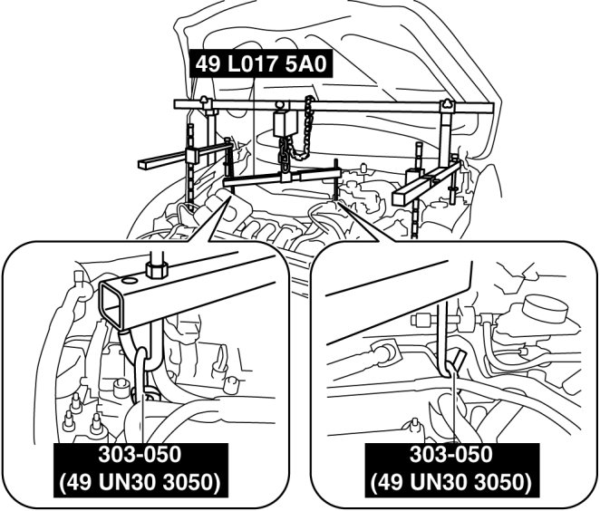 m. Install the SST (49 L017 5A0) to the SST (49 UN30 3050) with the hook of the SST (49 L017 5A0) facing outward.