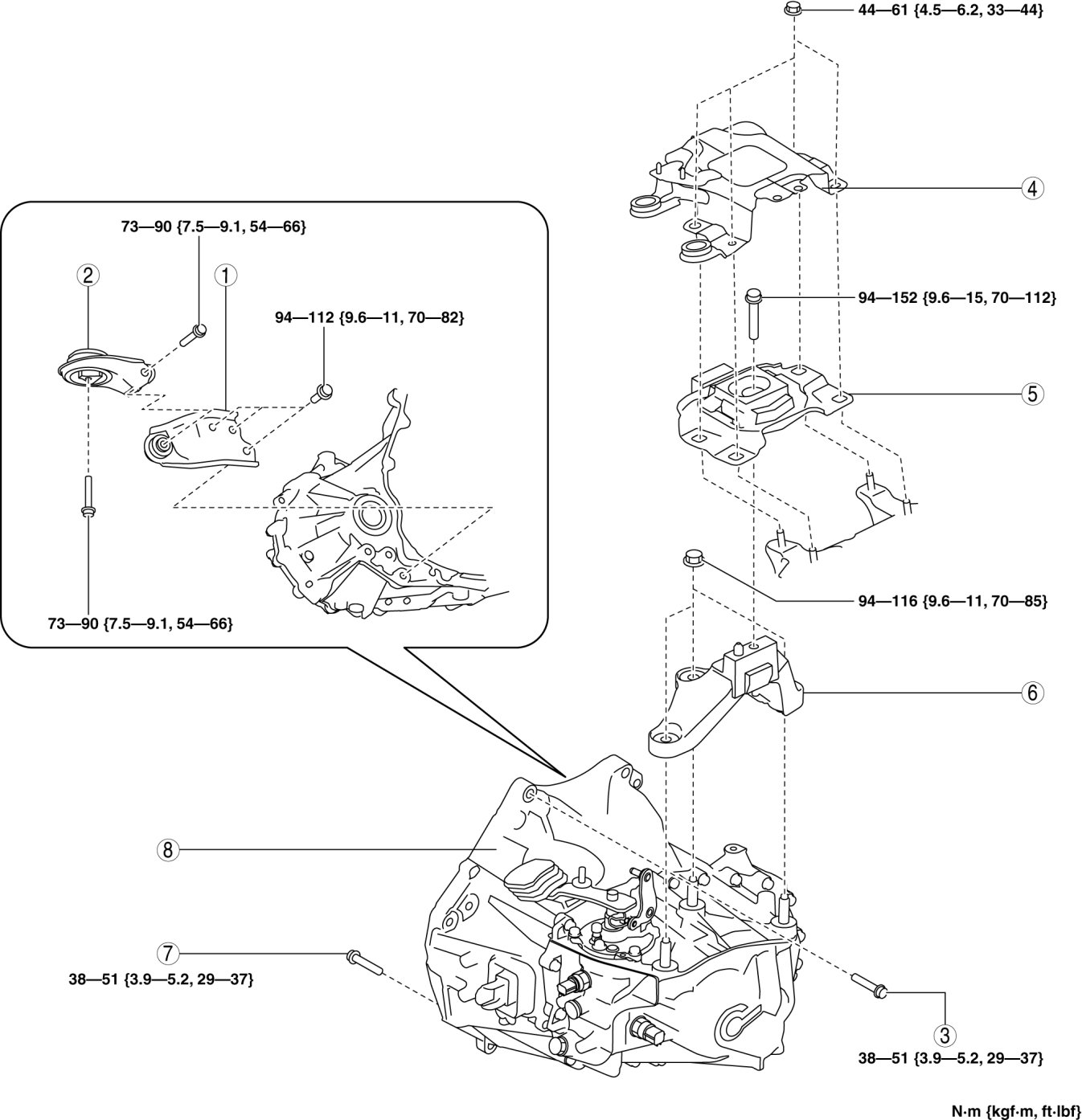 - 94-112 Nm {9.6-11 kgf-m, 70-82 ft-lbf}