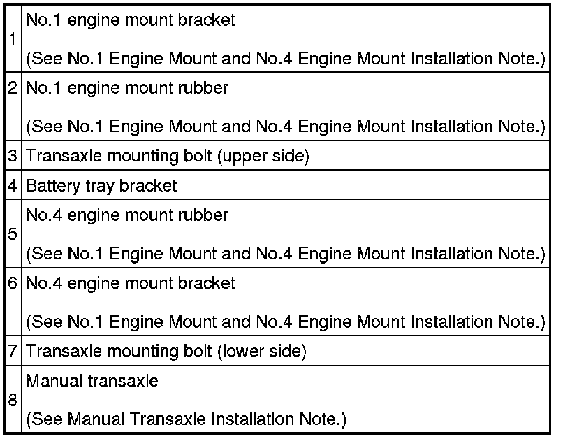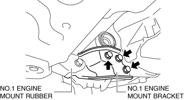 5. Fully tighten the bolts in the order shown in the figure and install the No.1 engine mount rubber.