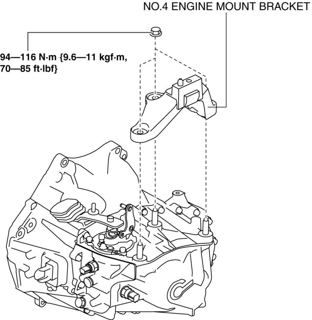 1. Install the No.4 engine mount bracket to the transaxle case.
