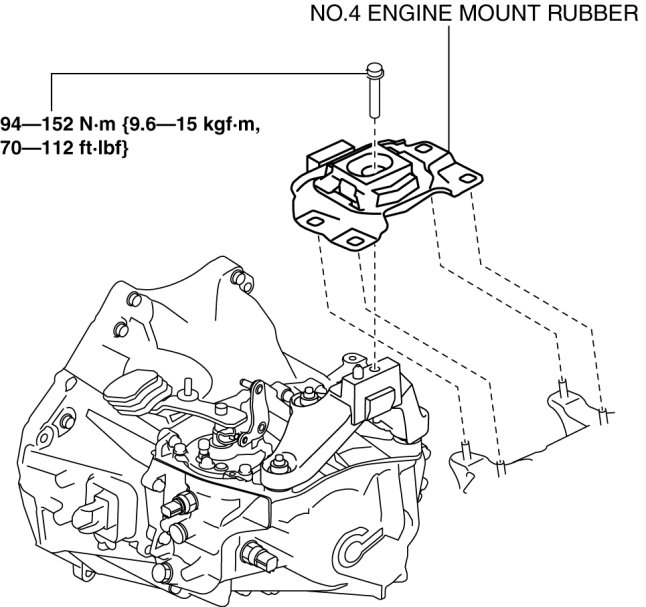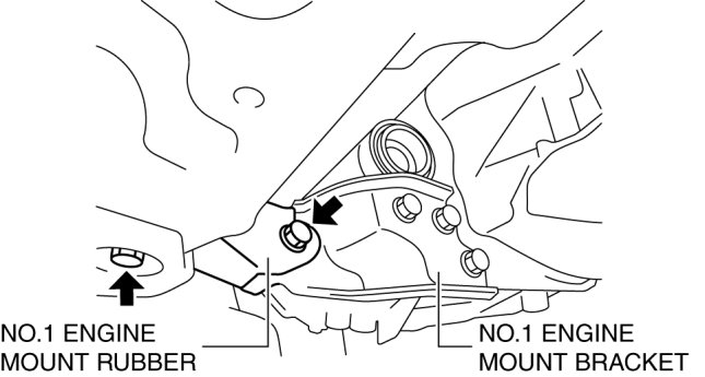 4. Place the No.4 engine mount rubber with the body stud bolts passing through the holes and tighten the bolt in the figure.