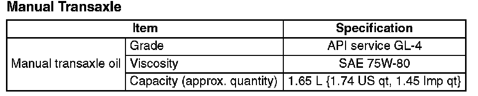 TRANSMISSION/TRANSAXLE TECHNICAL DATAManual Transaxle