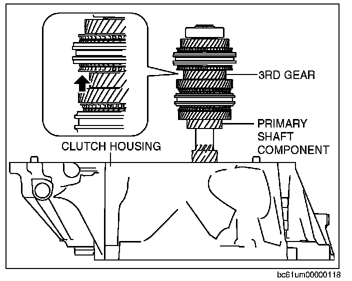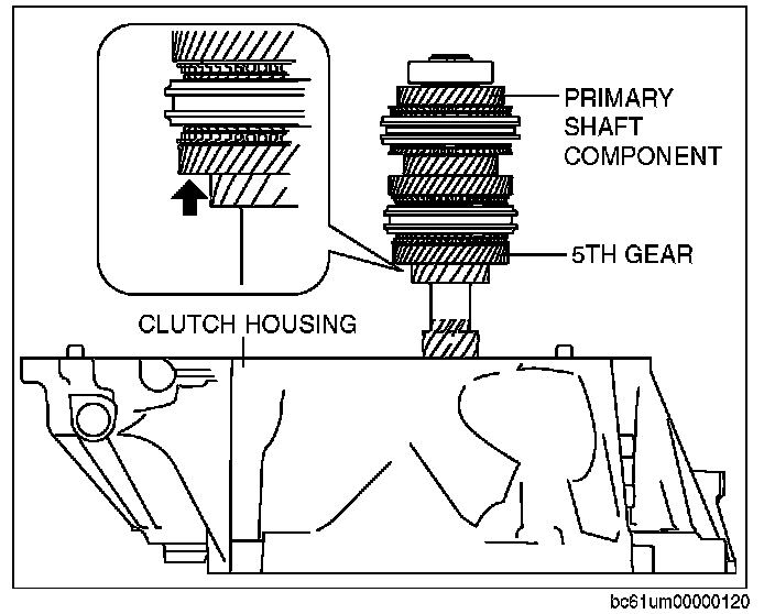 NOTE: To prevent error during the thrust clearance measurement, hold the primary shaft component by hand so that the primary shaft component does not move.