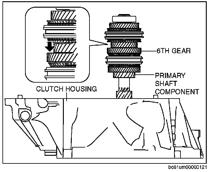 - If it exceeds the maximum specification, inspect the 6th gear and surrounding parts for damage and wear and replace the malfunctioning part.