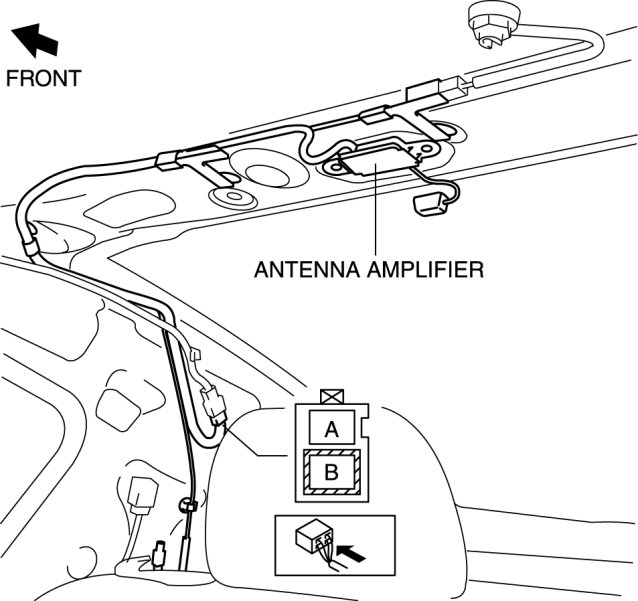 10. Verify that voltage is B+ at the antenna amplifier terminal A.