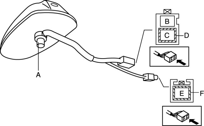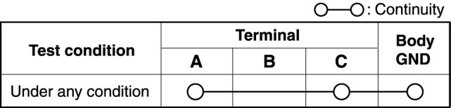 2. Verify that there is no continuity between the center roof antenna terminals A and C using an ohmmeter.
