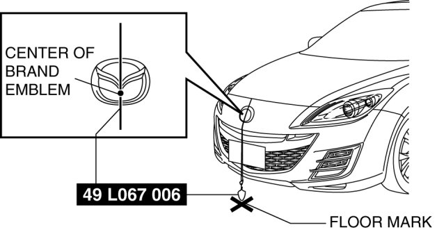 5. Adjust the SST (plum-bob) so that it is aligned with the center of the brand emblem, determine the center position at the front of the vehicle, and mark the center position on the floor surface.