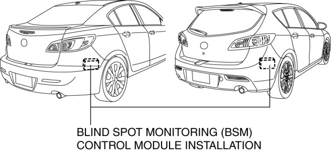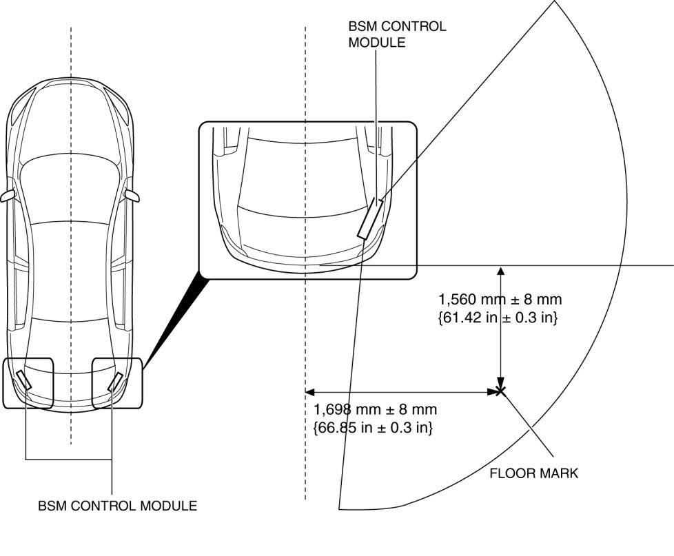 - If an obstruction such as a drain lid or a person is within a 3,500 mm {137.8 in} radius from the BSM control module, it will interfere with radar emitting and skew the radar test results. Remove any obstruction which is within a 3,500 mm {137.8 in} radius from the BSM control module.