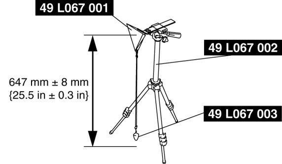 10. Install the SSTs (reflector and plum-bob) to the SST (tripod) and adjust the height of the reflector at its center to 647 mm ± 8 mm {25.5 in ± 0.3 in}.