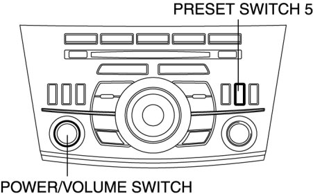 3. While pressing the POWER/VOLUME switch, simultaneously press the PRESET switch 5 for 3 s or more.