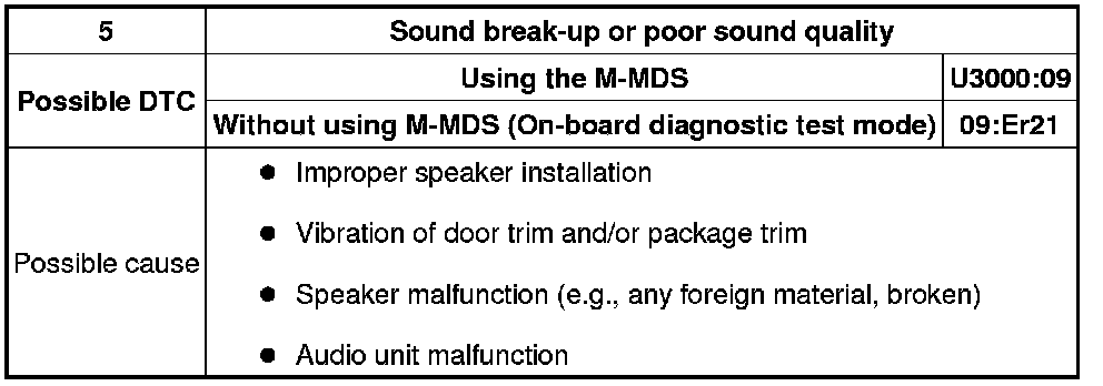 NO.5 SOUND BREAK-UP OR POOR SOUND QUALITY [ENTIRE AUDIO SYSTEM]